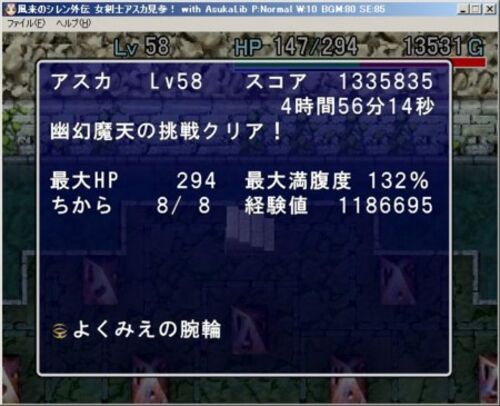 判断力が相当必要そうだ。 序盤から保存の壷がコンスタントに出続けたのでアイテム的に相当余裕でした。後は序盤でパコレプ盗んだり、とうぞくが売ってたりしたんで余裕といえば余裕のクリア。腕輪が潤沢すぎると、逆に行動に無駄が多くなりすぎる気がしてき…